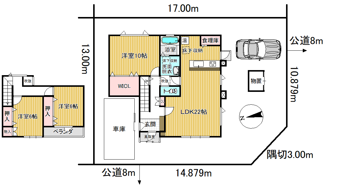 | 接道状況 | 西側8m公道、南側8m公道 | ||
